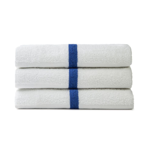 Premium Terry Blue Stripe Gym and Pool Towels are our most affordable towel line with a Cam border.